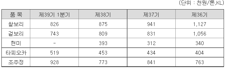 이 밖에도 원재료 중에 현미의 비중이 큰 편인데, 올해 벼 농사가 풍년이라는 뉴스가 많이 보이므로 가격은 안정화될 것으로 보입니다.