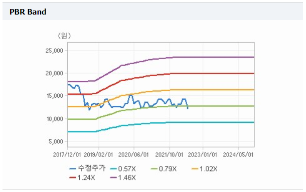 수년간 주가는 변동성이 낮은 모습을 보였는데, 올해 들어 급락을 거듭하여 PBR 밴드 하단을 뚫고 내려온 상태입니다. 코로나 시기에 잘 팔렸던 바이오크린콜 매출이 꺾이면서 지난해 실적이 안좋았고, 1Q22 실적까지 문제가 생기면서 부정적인 시각이 강해진 영향으로 보입니다.