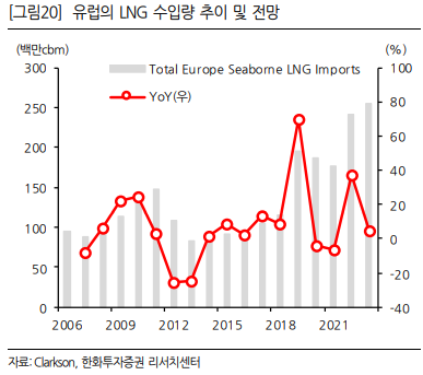 이 부분에 대해서는 지난번에 정리한 미래에셋증권 LNG 리포트에서 많은 이야기를 다루고 있습니다. 결론적으로 LNG 사업 분위기가 좋고, 이는 LNGC 수요 증가를 야기한다는 내용이었지요. 게다가 LNGC 발주를 해야 하는 유럽의 선사들은 한국 조선소를 좋아합니다.