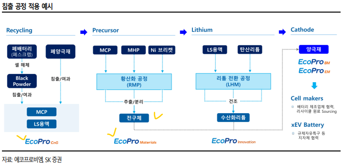 ㅇ 에코프로씨앤지는 셀 스크랩, 폐배터리 리사이클링으로 재활용 소재 추출