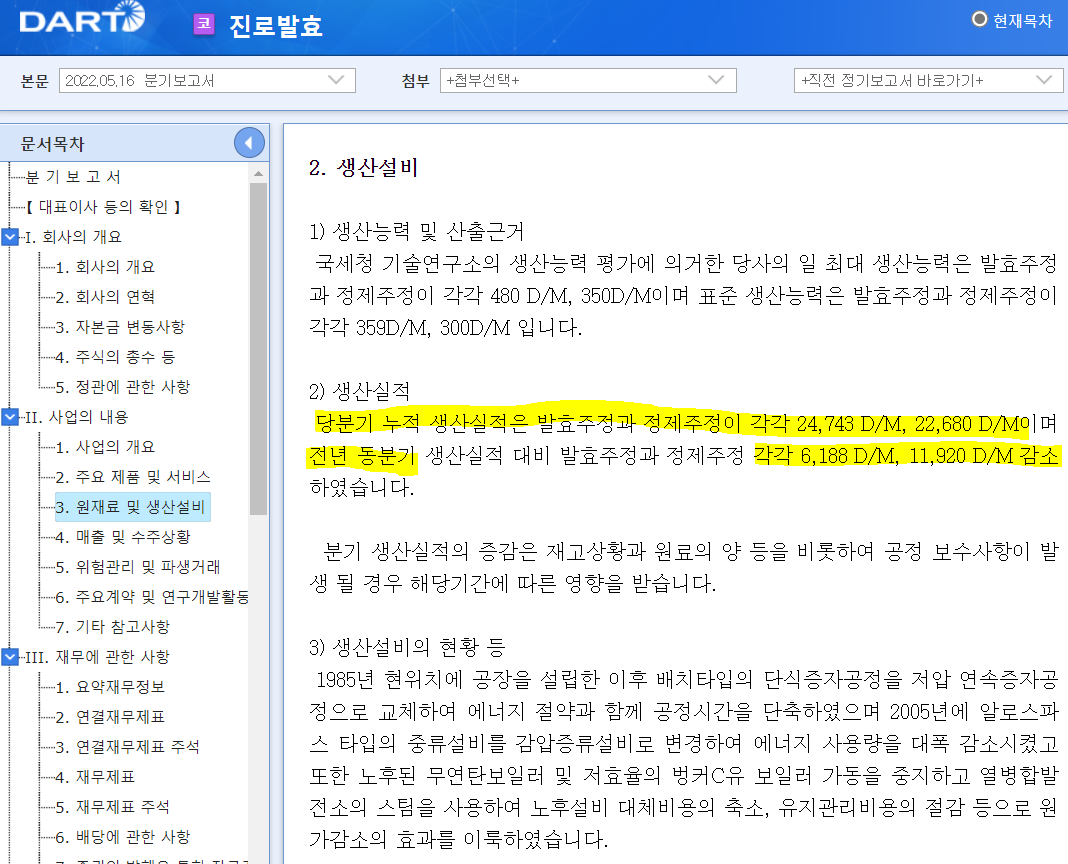 생산량이 YoY 많이 감소했습니다. 정제주정은 거의 반토막 났네요. 왜 이런 일이 생겼는지 주담과 통화하고 싶었으나 일주일 가까이 전화를 안받아서 포기했습니다. (통화 성공하신 분 계시면 공유 좀 부탁드립니다ㅠ)