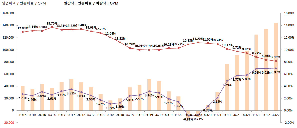 그러므로 숫자의 원인에 대한 분석에 대해서는 2Q22 실적을 살펴봤던 내용을